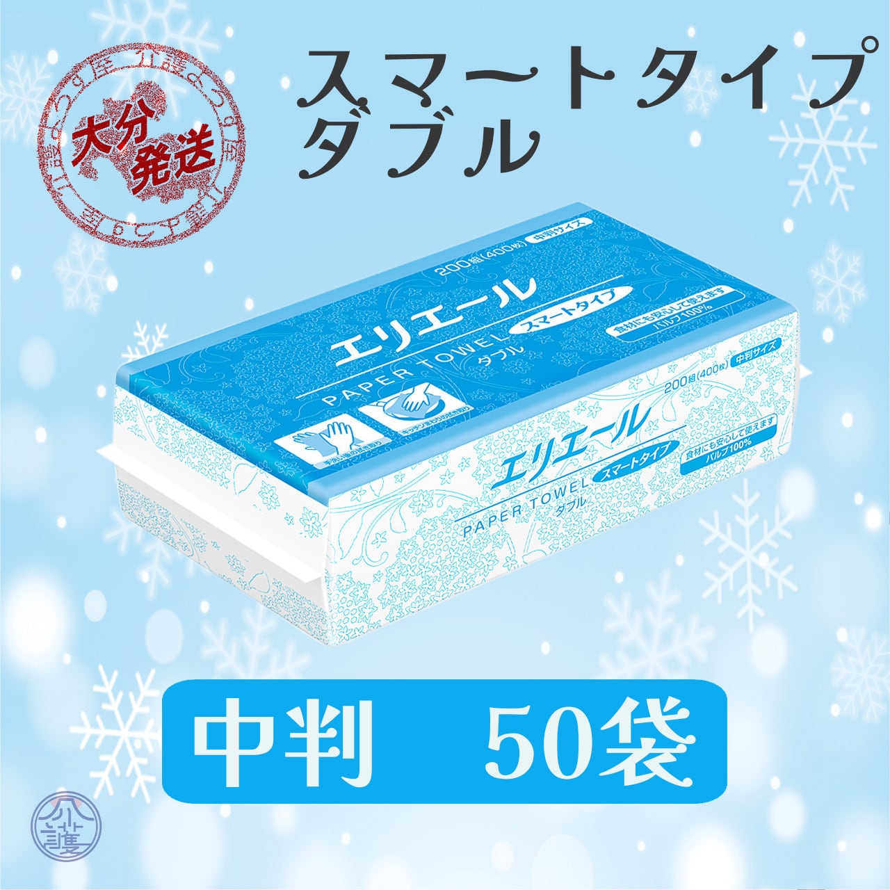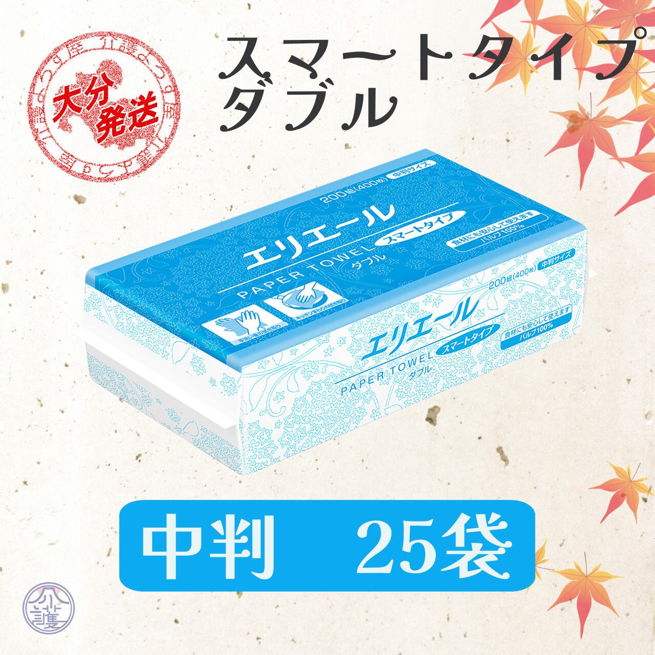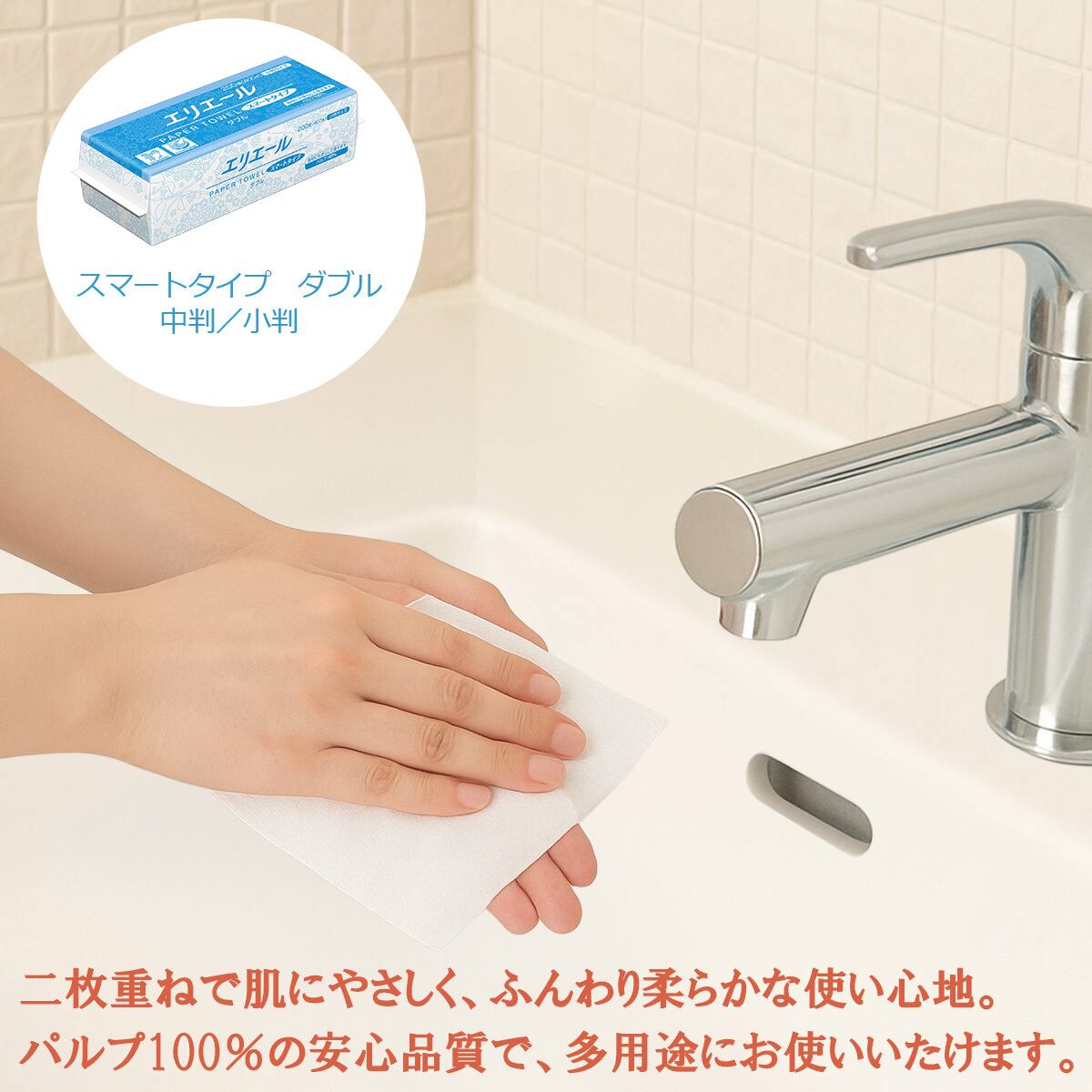 ペーパータオル エリエール スマートタイプ ダブル/中判/50袋(200組400枚)日本製 高品質 お手拭き 業務用 家庭用 お客様用 吸水性 備品 買置き 洗面台 21001287 一部地域送料無料 | 介護よろず屋 公式ショップ