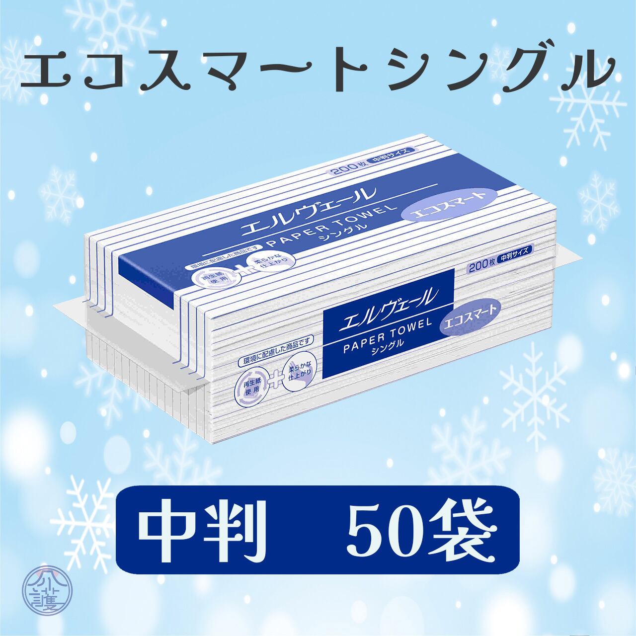 ペーパータオル エルヴェール エコスマート/中判/50袋(200枚)日本製 高品質 お手拭き 業務用 家庭用 吸水性 備品 買置き 洗面台 21000697 一部地域送料無料 | 介護よろず屋 公式ショップ