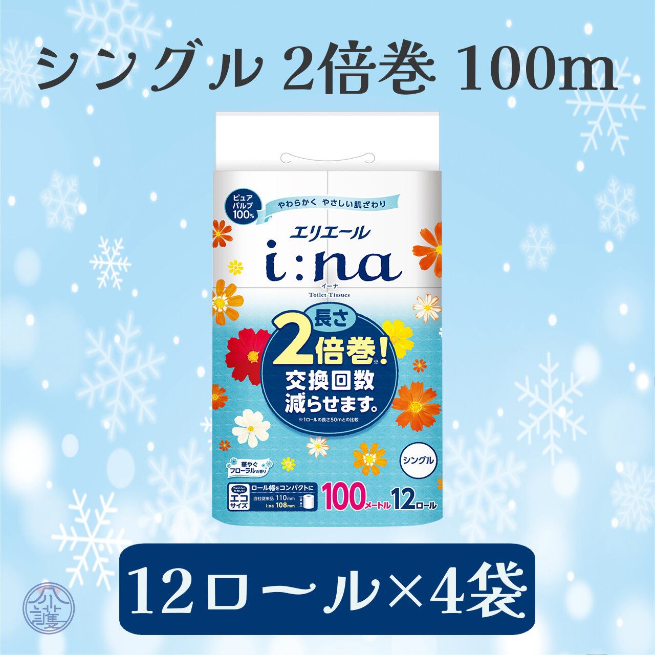 エリエール イーナ トイレットティッシュー 2倍巻き 100m シングルは、柔らかく、優しい肌ざわりが特長の高品質なトイレットティッシュです。長さ2倍巻で、通常の巻きよりも交換回数を減らすことができます。お子様から大人まで安心してご使用いただけるやわらかな質感で、家庭用、業務用のどちらにもおすすめです。トイレを快適に保つために、ぜひ一度お試しください。